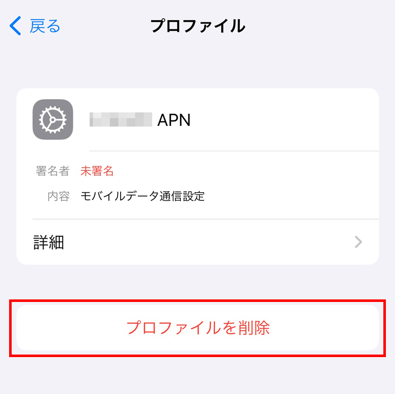 インターネット通信にはAPN情報が必要となり、格安SIM(UQmobile、IIJmio、mineo、LINEMOなど)をご利用の場合、「APN構成プロファイル」がインストールされている状態では通信を行うことができません。