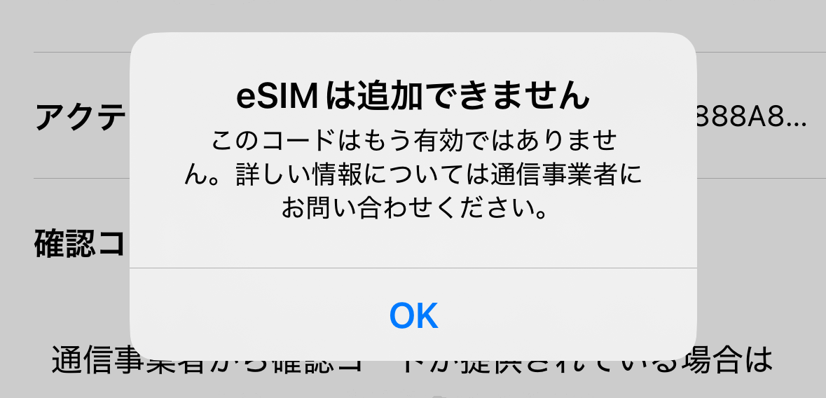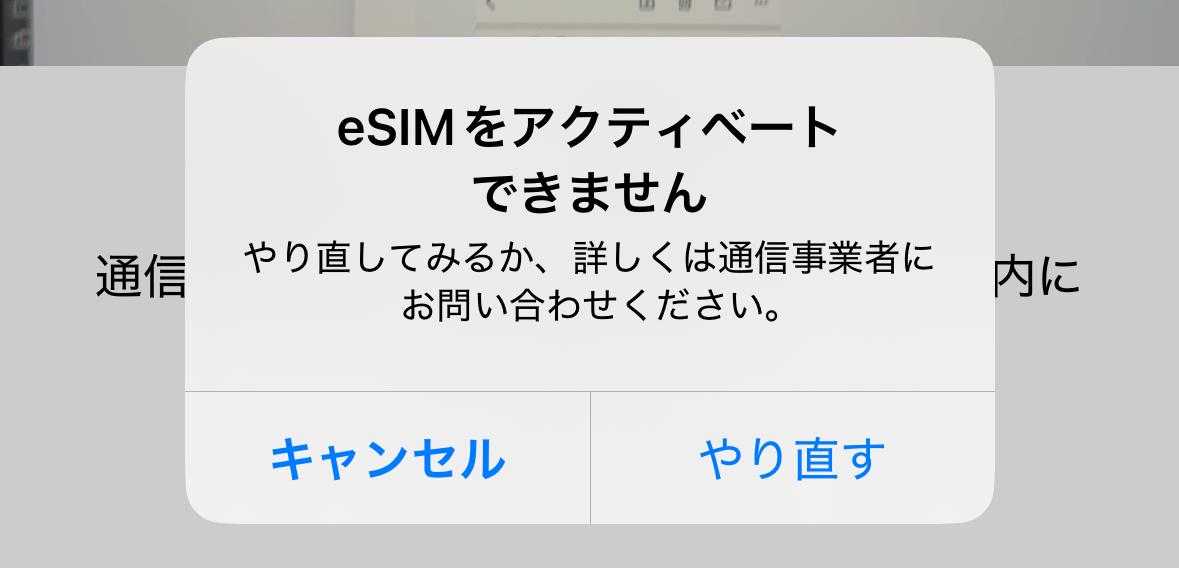 インストールは1つのeSIMにつき1回しか出来ません。既に完了している場合や複数回インストールを試した場合上のようなエラーが表示されます。