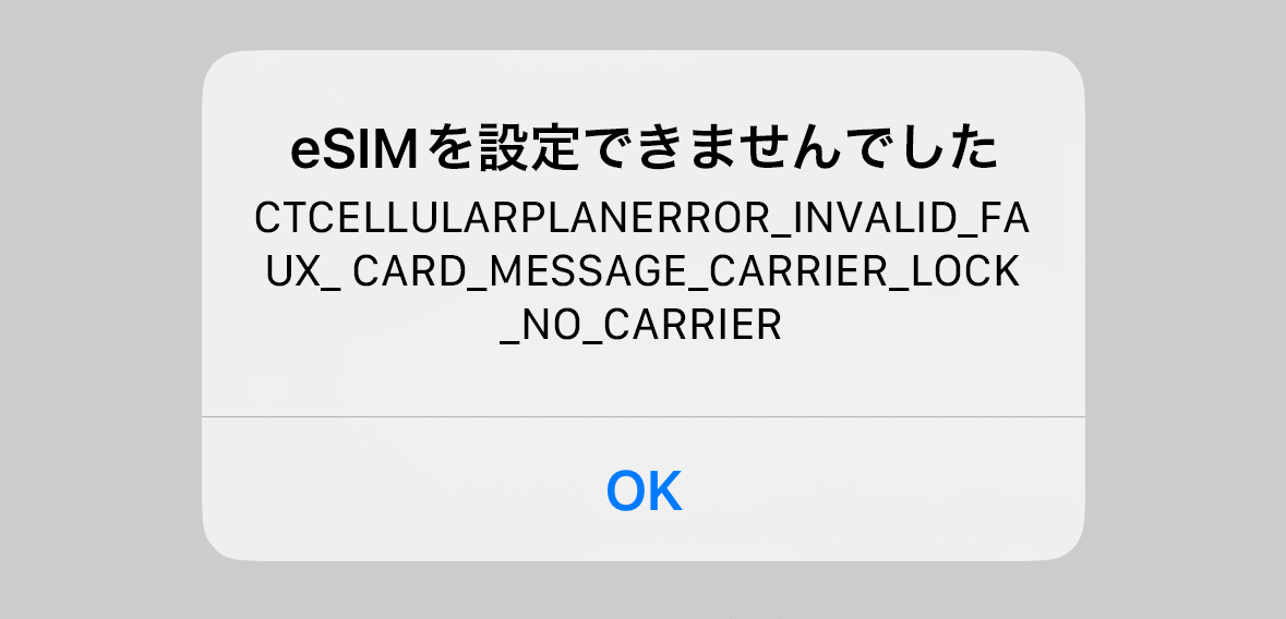インストールは1つのeSIMにつき1回しか出来ません。既に完了している場合や複数回インストールを試した場合上のようなエラーが表示されます。